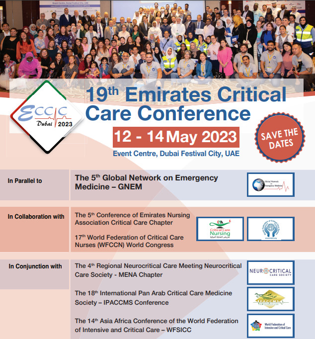 We are honoured to announce The 19th Emirates Critical Care Conference from 12th to 24th May, 2023 at Dubai Festival City, UAE.